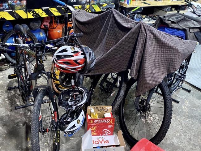 All biking gear (bike, tool kit, water cage)