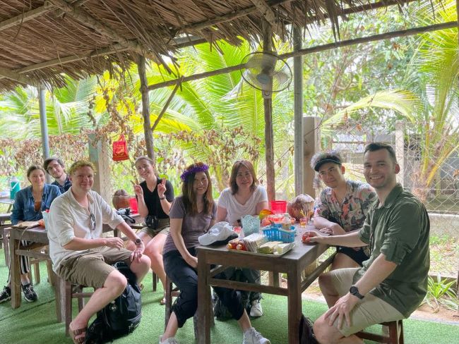 The motorboat will take you to UNESCO-recognized, Tan Phong Island, to explore the local life. Seeing and making the handicraft with water hyacinth (a type of plant growing enormously in the Mekong). Tasting some seasonal tropical fruit freshly cut from the garden