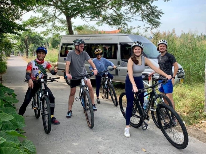 Our team willget picked-up at your accommodation in the city center and drive to countryside by private van (approx 45 minutes transfer). You will get on your bicycle in Long Hau and start cycling on small roads through fish farms and shrimps aquaculture as well as along the river for 7 km until the ferry station. The ferry ride will take you and your bike to the other side of the Saigon River which many locals use to get to work daily.